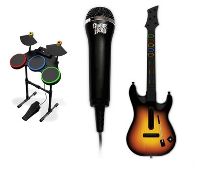 Novembre étant toujours propice à la sortie d’un nouveau gros volet de Guitar Hero, c’est en novembre 2008 que sort Guitar Hero World Tour (Guitar Hero IV). Petite révolution dans le monde Guitar Hero car désormais, ce n’est plus seulement la guitare (ou la basse) que l’on peut jouer, mais également la partie chant et la partie batterie. Ce, grâce à un micro sans fil et une batterie en plastique avec des pads que l’on doit frapper en rythme. Le concept n’est pas nouveau, car déjà crée par le principal concurrent : Rock Band. Edité par Electronics Arts, Rock Band avait déjà introduit le concept du micro / chant / guitare / basse / batterie en mai 2008. Le bundle complet Guitar Hero World Tour, avec le jeu et tous les instruments, coûtera la bagatelle de 200€. Une fois encore, encore plus de ventes du bundle que de petits pains par ma boulangère, des chiffres records et vous connaissez le refrain.