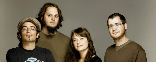 Les Cowboys Fringants à leurs débuts : Jean-François, Marie-Annick, Karl, Jérome, Domlebo.