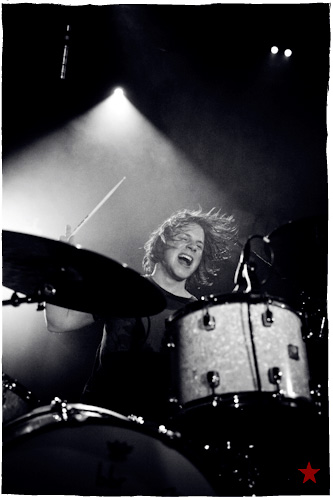 Durant une bonne heure, les deux compères revisitent leur répertoire. C’est toujours un réel plaisir que de voir Dries derrière sa batterie. La bouche ouverte, la tête qui s’agite au rythme de ses mains. Il semble tellement heureux et comblé, là enfermé dans son monde, que je me retrouve à l’observer, le sourire béat. Quand à Jen, ses doigts s’agitent sur le manche de sa guitare. Pour envoyer du lourd, il envoie. De temps en temps, il avance fièrement vers le devant de la scène, comme pour réclamer au public de faire monter le son.