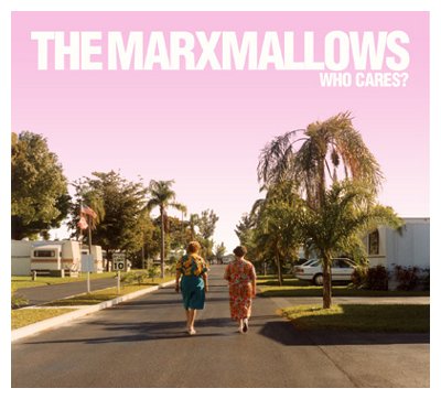 Quand je reçois un disque, ou que j’en trouve un qui m’intrigue, généralement je m’intéresse à la pochette, mais vraiment. Je lis les paroles, les re-lis, regarde les dédicaces. Là je n’ai eu droit qu’au visuel, mais il faut l’avouer, il est on ne peut plus approprié au style musical. Deux dames, pas forcément « jeunes » dans une rue qui semble sortie d’une banlieue californienne, où la vie ne semble pas trop être dure, et où l’on imagine la progéniture de ces « desperates housewives » faire la fête au skate park du coin en écoutant du punk/rock et en enchainant les bières. Le ciel est rose, ton barbe à papa, et c’est un peu l’ambiance de l’album, comme si on faisait une teuf entre potes dans une piscine de barbe à papa.