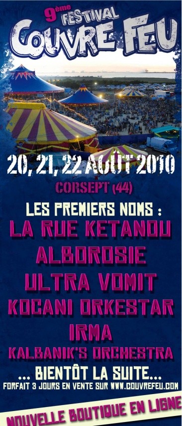 Publié le 03 mai 2010 à 14:48 par Commentaires fermés sur Festival Couvre-Feu : La Programmation Complète #Ez3kiel #Nouvel RSuite au tremplin organisé vendredi dernier et après la révélation en avant-première faite par Tony Boudoni, le festival Couvre Feu et Rue Tabaga ont révélé aujourd’hui la programmation complète du festival sur leur site officiel.
