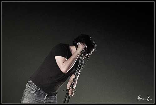 Arrivé dans la salle, je remarque qu’il n’y a pas les mêmes instruments sur scène que la veille. 20h, la première partie arrive sur scène : un gars seul avec un casque sur la tête s’installe au clavier et c’est parti pour 30min très, très longues… La musique est tellement peu intéressante que j’en profite pour somnoler. Cascadeur, ce n’est pas mon truc et c’est pas sa cascade (j’enlève mon casque pour mettre un masque de catcheur) qui m’aura sortie de ma torpeur.