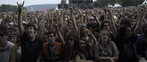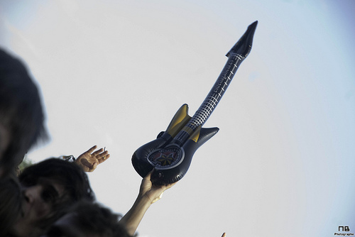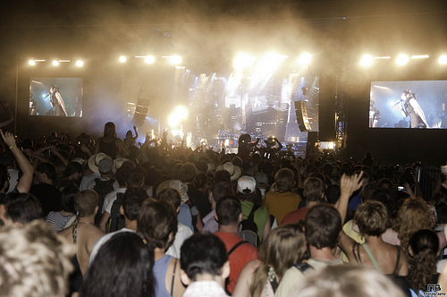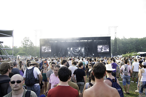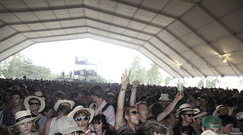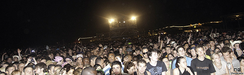 En quittant cette scène, on traverse encore des stands, pour arriver au chapiteau. La deuxième plus grosse scène, un énorme chapiteau, qui faisait office de micro-ondes géant. Rentrer dessous pour faire quelques clichés, et ressortir en sueur, les gouttes qui coulent le long du visage. Le chapiteau, c’est là que bizarrement, j’ai pris mes plus grosses claques, c’est là que j’ai le plus eu la sensation d’être proche du public, et pas un photographe parmi les autres. J’ai été soufflé par The Gallows, et ses chanteurs roux hystériques qui sautent partout. J’ai naturellement été charmé par John Stargasm et Ghinzu, même si on n’a eu le droit qu’aux chansons « douces » en photo, et plein de découvertes, on notera aussi LCD Soundsystem, qui a décapé le dancefloor.