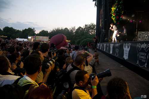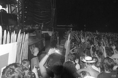 Le concert que je n’ai pas vu : j’ai vu le public, j’ai vu la folie, la scène de la plage devenue une fourmilière. Une ambiance de fou, violente, je n’ai même pas osé/pu approcher la scène pour faire mes photos. Regret, car la condition imposée par le groupe était du Noir & Blanc. Oui sûrement un caprice d’originalité, mais techniquement, en pleine nuit, avec les lumières de cette scène, c’eut été un pur délire. Mais la marée humaine m’a dissuadé, j’ai préféré apprécier l’orgie musicale en retrait.