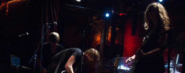 Olivier Marois est le premier à monter sur scène. Sa folk avec des textes en français ne m’emballe pas vraiment, ce n’est pas mon style, mais il arrive quand même à me faire passer un bon moment. Le groupe suivant est Noriega qui est venu avec son fan-club. Ils jouent vite et fort, musicalement ce n’est pas trop mal mais la voix du chanteur ne passe pas au-dessus des instruments, et le peu que l’on entend on a l’impression que le chanteur n’a toujours pas mué.