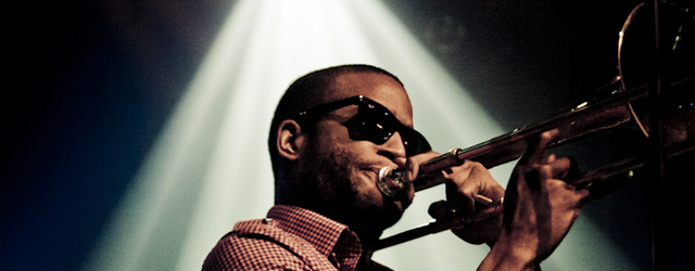Il est 21h45 quand Troy Andrews alias Trombone Shorty arrive sur scène. Il enchaîne sur deux titres aux sonorités Rock, dont un riff de Bulls of parade de Rage Against The Machine (merci Bruno pour la précision), là je bloque plus ou moins sur Mike Ballard à la basse, qui me scotche. Quand à Troy Andrews, il est tout simplement exceptionnel au trombone, je pense qu’il pourrait battre des records d’apnée ! En tout cas, il a su emmener son public sur la route du « Supafunrock » , une route faite de jazz traditionnel nouvel-orléanais mélangé à du funk/soul à la sauce Rock. Les mouvements de têtes ne cesseront qu’aux dernières notes de musique.