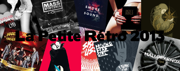 Publié le 08 janvier 2014 à 10:00 par Petit Nounours Commentaires fermés sur 2013 – La Petite Rétro #Clownage #Deftones #Déportivo #Driving Dead Girl #Lunatic Age #LYS #Mallory Knox #Marcel et son Orchestre #Mass Hysteria #Métal #Missing Girl #My Little Cheap Dictaphone #My Vitriol #Noswad #Queens Of The Stone Age #Rock #Saez #Skip The Use #Stereotypical Working Class #The Dukes