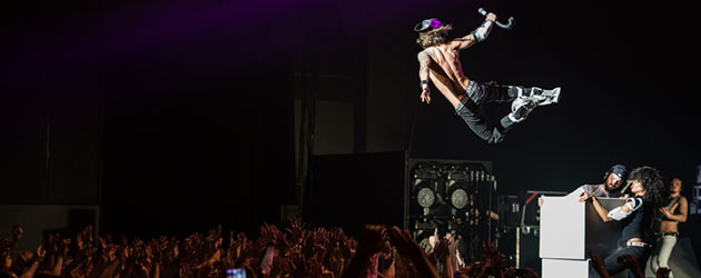 Le calme avant la tempête, voici comment qualifier cette soirée du 11 mars dernier à l’Amphitéa d’Angers. Elle a effectivement débuté en douceur avec le son acid pop des toulousains de Las Aves (ex. The Dodoz). Mais la tornade annoncée et connue sous le nom de Shaka Ponk était bel et bien au rendez-vous. Un cyclone d’énergie pure qui a entrainé le public avec lui durant deux heures. Personne n’aura pu résister à cet ouragan scénique qui décoiffe même les plus aguerris. N’écoutant que mon courage, j’ai bravé ces intempéries pour vous rapporter les quelques photos qui suivent…