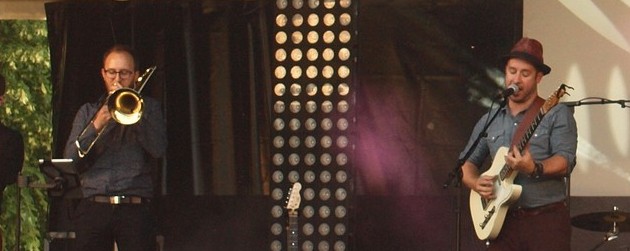 Dès les premières notes, le ton est donné. Les sept musiciens se lancent dans une musique à laquelle il est difficile de mettre une étiquette… du blues, du soul, du funk… en tout cas le dosage est excellent, la musique est enivrante, ponctuée par la basse et la batterie et où chaque instrument prend sa place. Cette alchimie de sons, relevée par les cuivres, ne tarde pas à faire venir de nombreux spectateurs. Le chanteur, Arnaud Fradin, les invite à venir près de la scène et à danser !… Peu à peu la musique gagne le cœur du public. Le rythme endiablé, les solos de guitare, le jam des cuivres, la voix chaude et puissante d’Arnaud, nous entraînent dans les profondeurs de la Nouvelle Orléans et aussi sur des rives inconnues. Nous les avons accompagnés dans ce merveilleux voyage avec beaucoup de plaisir. Un groupe à ne pas rater !