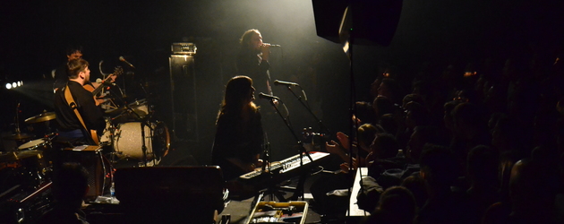 Les fans sont venus en nombre ce dimanche de février pour un des trois concerts parisiens du groupe québécois Les Cowboys Fringants. Les premières notes de Bye Bye Lou démarrent à peine que la température de la salle augmente considérablement. Le public, qui connait les paroles sur le bout des doigts, reprendra en chœur les vingt-quatre chansons de la set-list pendant plus de deux heures de concert. Dès le troisième morceau, les paroles de Ti-Cul occupent la salle, sous les clameurs un peu primitives des fans en sueur. Les premiers morceaux sont bien choisis et démarrent ce concert sous le signe de la bonne humeur. Pour calmer l’ardeur de la foule, les artistes entament une ode aux livreurs de pizza, pleine de poésie avec la chanson Pizza Galaxie.