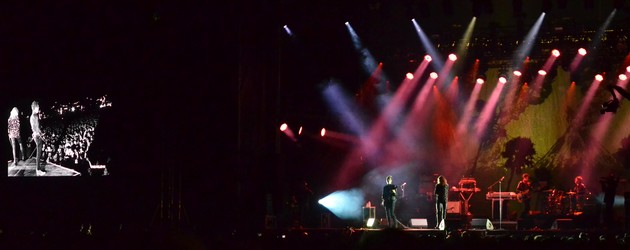 La fatigue commence à nous gagner mais on est vite réveillés par la prestation rugissante des Kills sur la scène John. Allison Mosshart se fait furieuse et sensuelle. La guitare est lourde et les machines en tension. Leur prestation s’ouvre sur Now How suivi de U.R.A et Fever. Un bassiste et un batteur ont rejoint le duo. Le dernier album est bien représenté même si leurs gros tubes ne sont pas en reste. On poursuit les hostilités avec Kissy Kissy, Hard Habit to Break, et Heart of a Dog. La voix est à la fois éraillée, sensuelle et violente. Le corps ondule et la chevelure blonde est lancée en avant et en arrière dans un jeu de scène du plus bel effet. La guitare est blues profonde soutenue par des machines solides. Black Balloon est superbe. Allison ne se ménage pas et poursuit le show tantôt le pied droit sur l’enceinte de retour, tantôt tombée à genoux dans un cri. Jamie Hince se fait ange gardien à toute épreuve et assure de très jolies double voix. Le duo nous régale d’une prestation puissante et profondément rock.