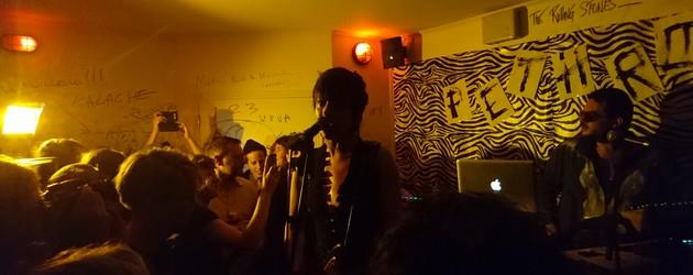 Pour cette soirée, c’est ambiance bon(ne) enfant : une salle confinée, un plafond bas, une odeur de bière mélangée au bois. J’entre dans le bar et suis catapultée plusieurs années en arrière du haut de mes 17 ans à aller voir mes potes jouer, sur une scène de fortune, des reprises aux guitares saturées de Noir Désir, RATM et Nirvana dans un lieu pas vraiment adapté niveau acoustique. Sauf que ce soir ce n’est pas un groupe d’adolescents qui joue, mais le groupe Pethrol avec la pétillante Héloïse Derly et Mademoiselle K avec la très hot Katerine Gierak.