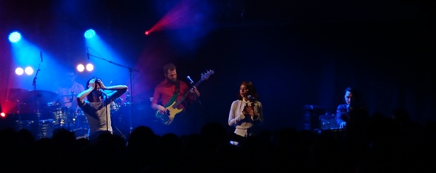 La salle est pleine pour accueillir Foxygen et leur pop hybride. L’ouverture se fait sur un duo batteur-cuivres impressionnant. Le reste du groupe arrive et remplit l’espace scénique. Le chanteur Sam France a des faux airs de Jagger et ondule derrière son micro et ses lunettes noires. Le public est réactif et beaucoup ont les paroles des chansons aux lèvres. Une choriste les rejoint et donne du pep’s à la prestation. L’ambiance est rétro au possible et évoque les sons de Bowie ou des Rolling Stones. Les parties instrumentales sont surprenantes. Les changements de rythme  prennent le spectateur par surprise et dynamisent l’ensemble. Follow The Leader est d’une efficacité redoutable. Les musiciens connaissent leurs classiques et évoluent d’une ambiance rocksteady à de purs moments guitar hero. L’influence du glam rock est très présente dans la gestuelle de Sam France, qui nous offre un instant humoristique assez inattendu en cherchant puis appelant sa guitare qu’il ne trouve pas. Le chant est intégré à la musique comme un instrument à part entière. Les solos de batterie happent l’attention de la foule et clouent sur place. Le groupe est magnifiquement mis en lumière pendant tout le show par Marine Philomen Roux. Foxygen sera rappelé pour deux chansons et le public les accompagne le bras levé et le sourire au visage. Globalement la prestation est réussie, même si l’on peut regretter le côté un peu automatique de l’interprétation.