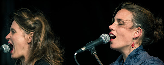 Pour cette première date (jeudi 27 juillet) le programme était comme d’habitude varié et destiné à plaire au plus grand nombre avec Ginkgoa, T-Ranga, La Pegatina, Jøhan & Rud’z (issus du collectif Night Birds) et mon coup de cœur incontestable : Duo Du Bas. Pour ce duo de femmes, je me dois de vous faire le pitch de leur « spectacle ». L’une est bretonne, l’autre originaire du pays basque et toutes les deux habitent Douarnenez (Finistère). Elles ont en commun le chant traditionnel de leurs régions respectives mais voulaient s’ouvrir à toutes les cultures. Elles sont donc parties à la rencontre de leurs voisines pour cuisiner avec elles et glaner quelques chants aux passages. Le résultat est passionnant, un spectacle nommé Casseroles fait de bric et de broc mêlant chants traditionnels bretons, basques mais aussi créoles, brésiliens, marocains, polonais… Un vrai tour du monde.