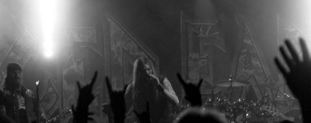 Après une courte pause Iced Earth déboule sur scène. Le set commence avec Great Heathen Army, un extrait de leur dernier album, Incorruptible. Et on peut dire que les décibels augmentent d’un ton et demi ! Les stars de la soirée, ce sont surtout les guitares, particulièrement bien servies. Mais il y a aussi le charisme de Stu Block, et sa voix tout à fait impressionnante. Les titres sont heavy avec un chanteur hargneux et théâtral.